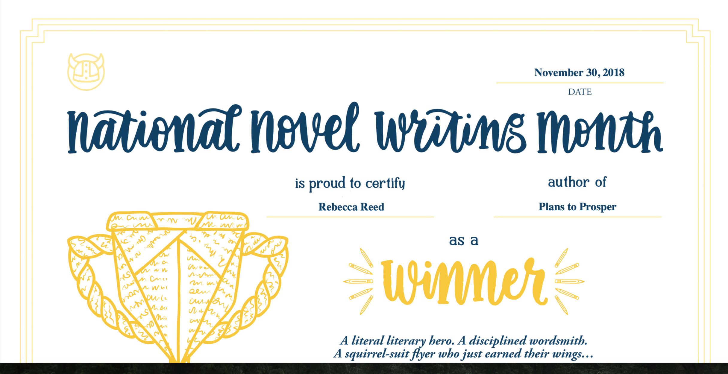 So NaNoWriMo, thanks for a fabulous month! I appreciate the encouragement and learning opportunity you provided and will look forward to next year.