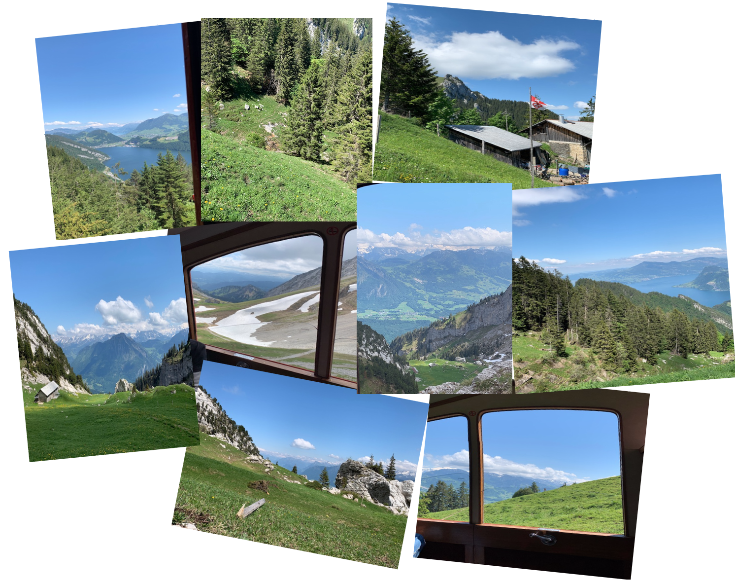 As a group we rode across Lake Lucerne in a boat and traveled up Mt. Pilatus in a cogwheel train. The steepest in the world, we were told. The views as we rode up the mountain included a breathtaking moment with each turn of my head. Cattle grazing peacefully in alpine meadows, wire fence and trails cut into the side of the slope, wildflowers, trees, and an occasional house or barn. We saw a hiker or two as well. Braver (and better conditioned) souls than me.