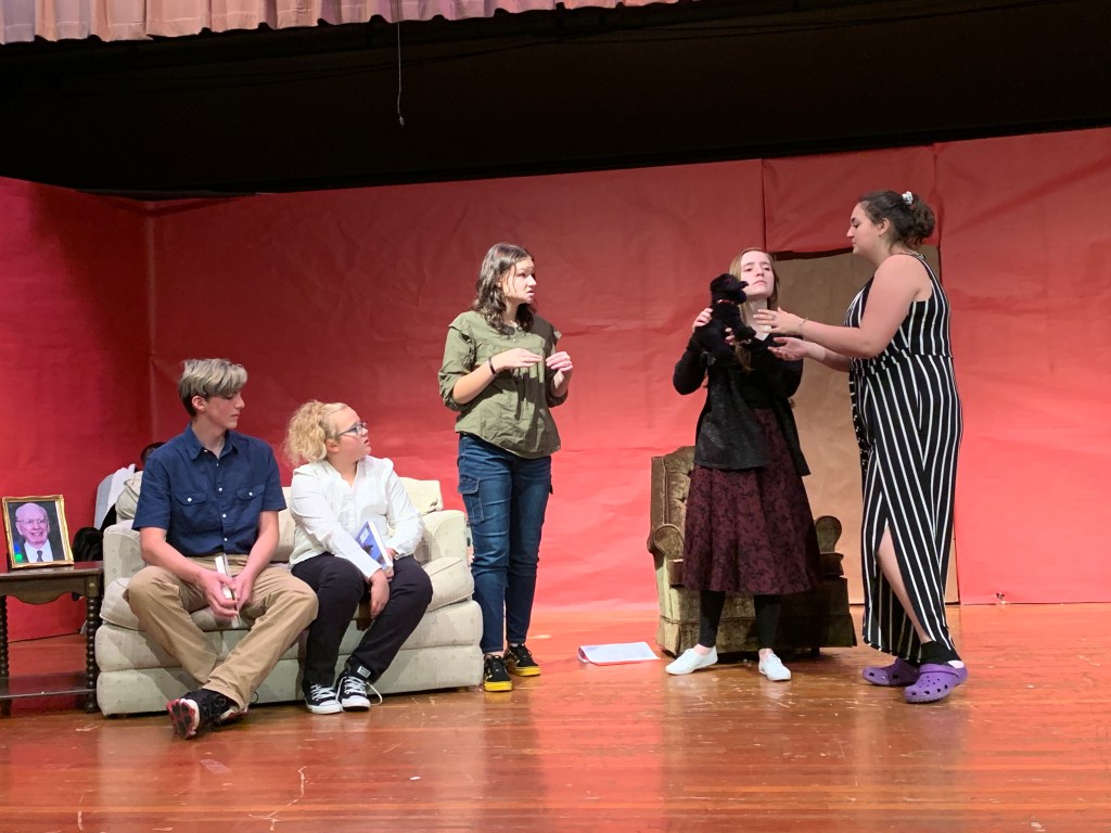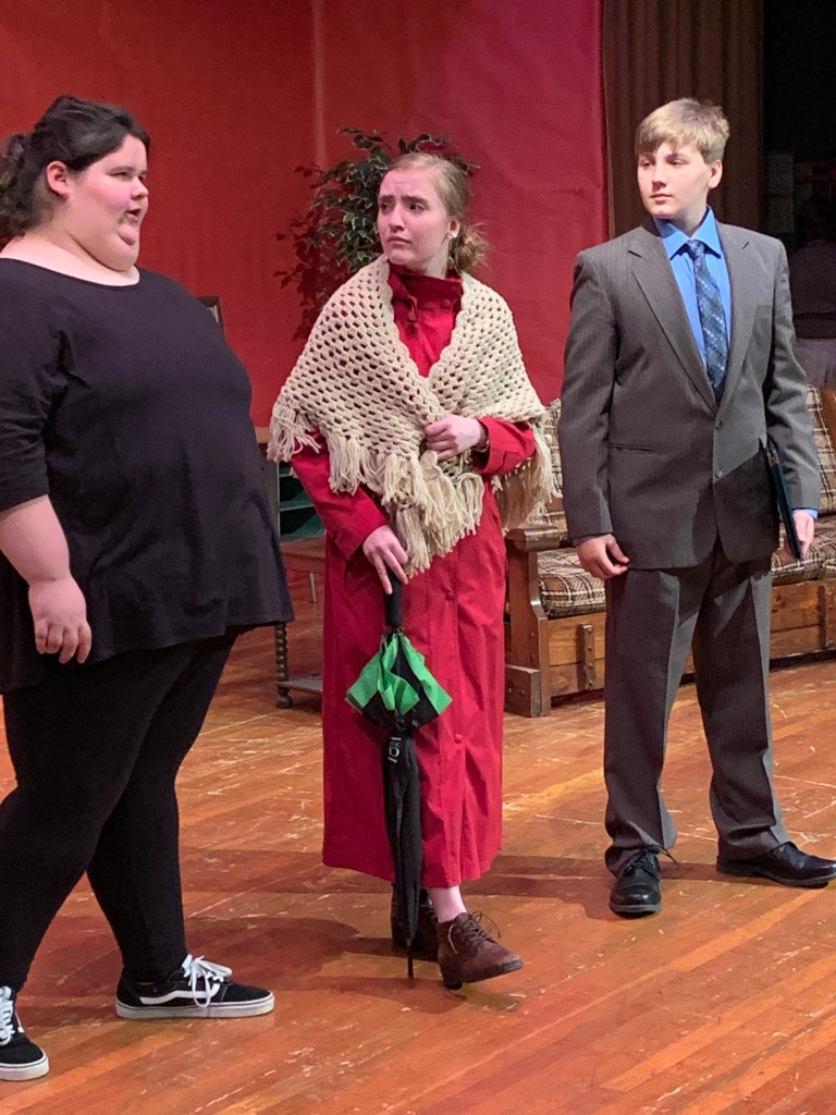 What happens when a wealthy widow fakes her death in order to determine the most worthy heir? A comedic drama of course! This year’s fall play at West Central was co-written by senior student, Natalie Kennedy, who proposed the original concept, and co-director, Rebecca Reed. Natalie stars as the wealthy widow, Ms. Lillian, who takes in orphaned teen, Brooke, as a companion and servant.