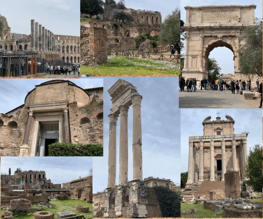 The next stop was across the road to the Forum, past the palace on Palatine Hill and several ruined temples. This area was fascinating as well, with its crumbling remains and storied past. I could almost hear the gossip and greetings called over the din of haggling and the citizen speaking about some law or other. Sandals slap marble and stone, fabrics swish, people live their lives.
