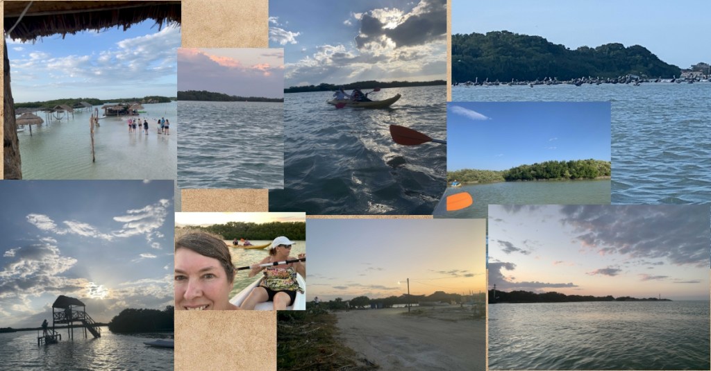 I’ve kayaked in rivers and on a lake in Costa Rica, but this kayaking experience was unlike any I’ve had before. First, the water was shallow. In many places, mud islands waited inches below the surface to strand unwary passersby. Second, the population of birds was astounding: white and brown pelicans, gulls, and others I can’t name, plus, 3 pink flamingoes!